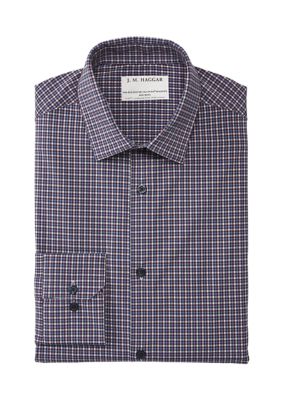 J M Haggar Men S Performance White And Blue Check Dress Shirt Belk